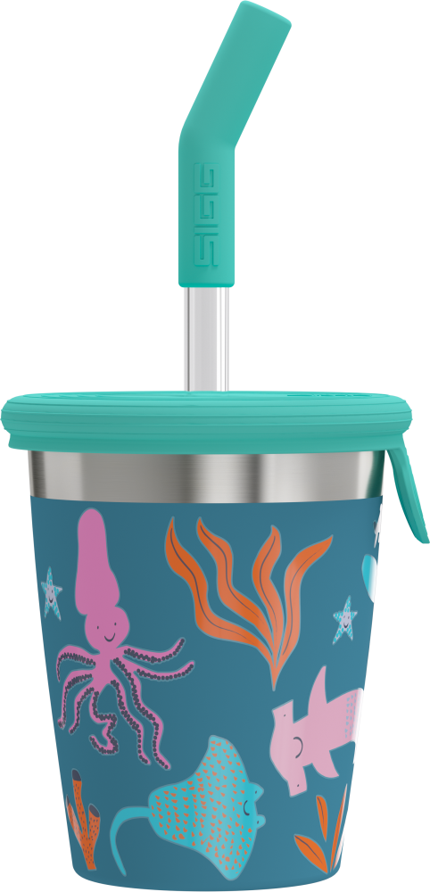 Die farbenfrohen Kids Straw Cups mit abnehmbarem Silikondeckel sind die perfekte Wahl für kleine Entdecker, die zu Hause gerne aktiv sind. Einfach mit Wasser, Sirup oder anderen Kaltgetränken befüllen, den Deckel mit Trinkhalm aufsetzen und los geht's! Das weiche Silikon-Mundstück mit abgerundeten Kanten sorgt für ein angenehmes Trinkerlebnis und motiviert Kinder, mehr zu trinken. Beim Spielen umgekippt? Kein Problem! Der Deckel verhindert, dass Wasser herausschwappt – bye-bye lästige Wasserlachen! Die robusten Becher aus 90% recyceltem Edelstahl sind eine nachhaltige und langlebige Alternative zu Plastik. Sie sind BPA frei und geschmacksneutral. Durch den abnehmbaren Deckel lassen sich die Kids Straw Cups einfach in der Spülmaschine oder mit Bürste und Schwamm reinigen. Ein weiterer Pluspunkt: Die Becher sind stapelbar und sparen so Platz im Küchenschrank. Der Deckel ist zudem mit allen SIGG Kids Cups kompatibel.