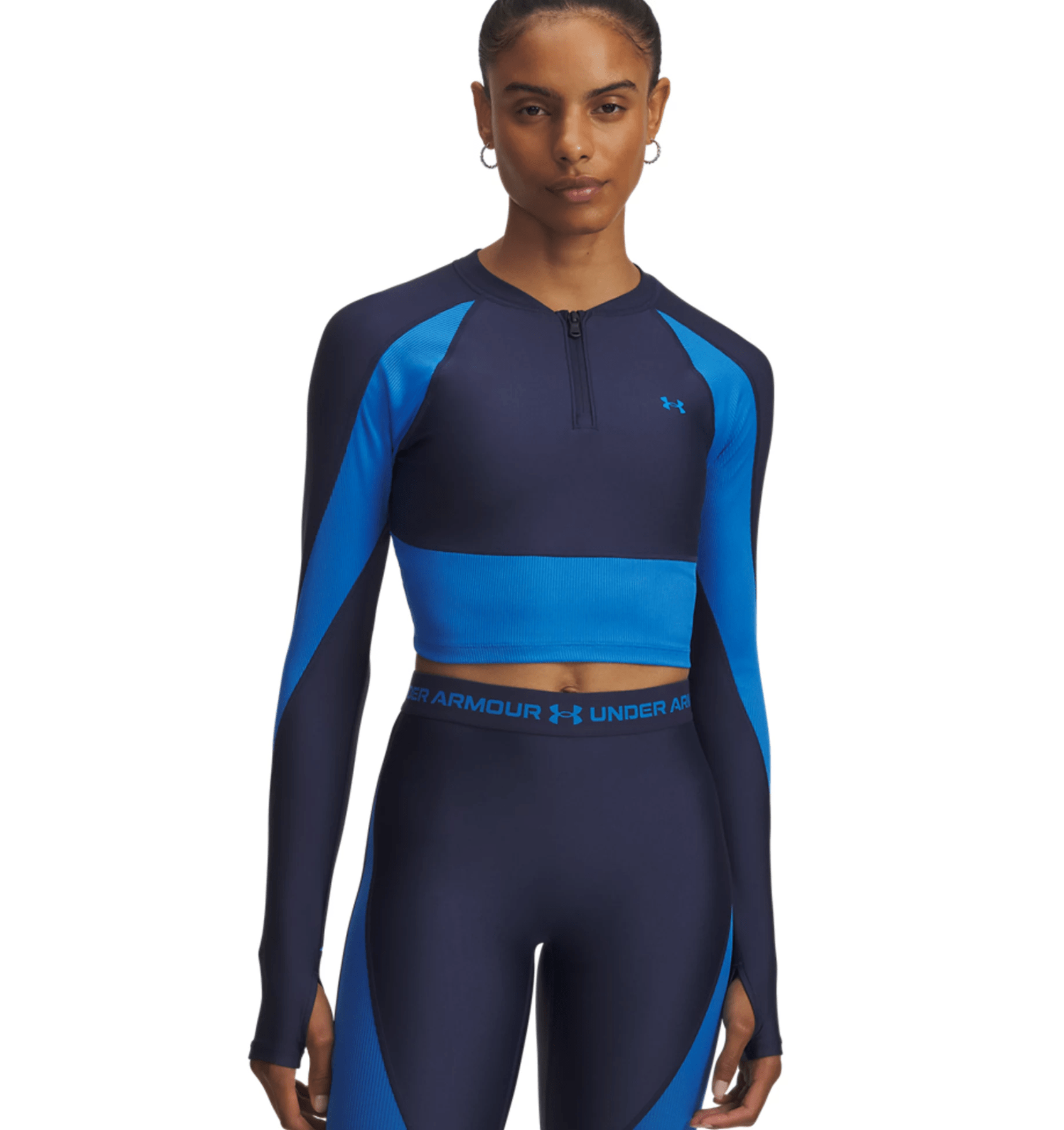 HeatGear is our original performance baselayer—the one you put on first and take off last. We added stretchy ribbed panels to this already sweat-wicking, breathable cropped ¼ zip for ultimate comfort and style.